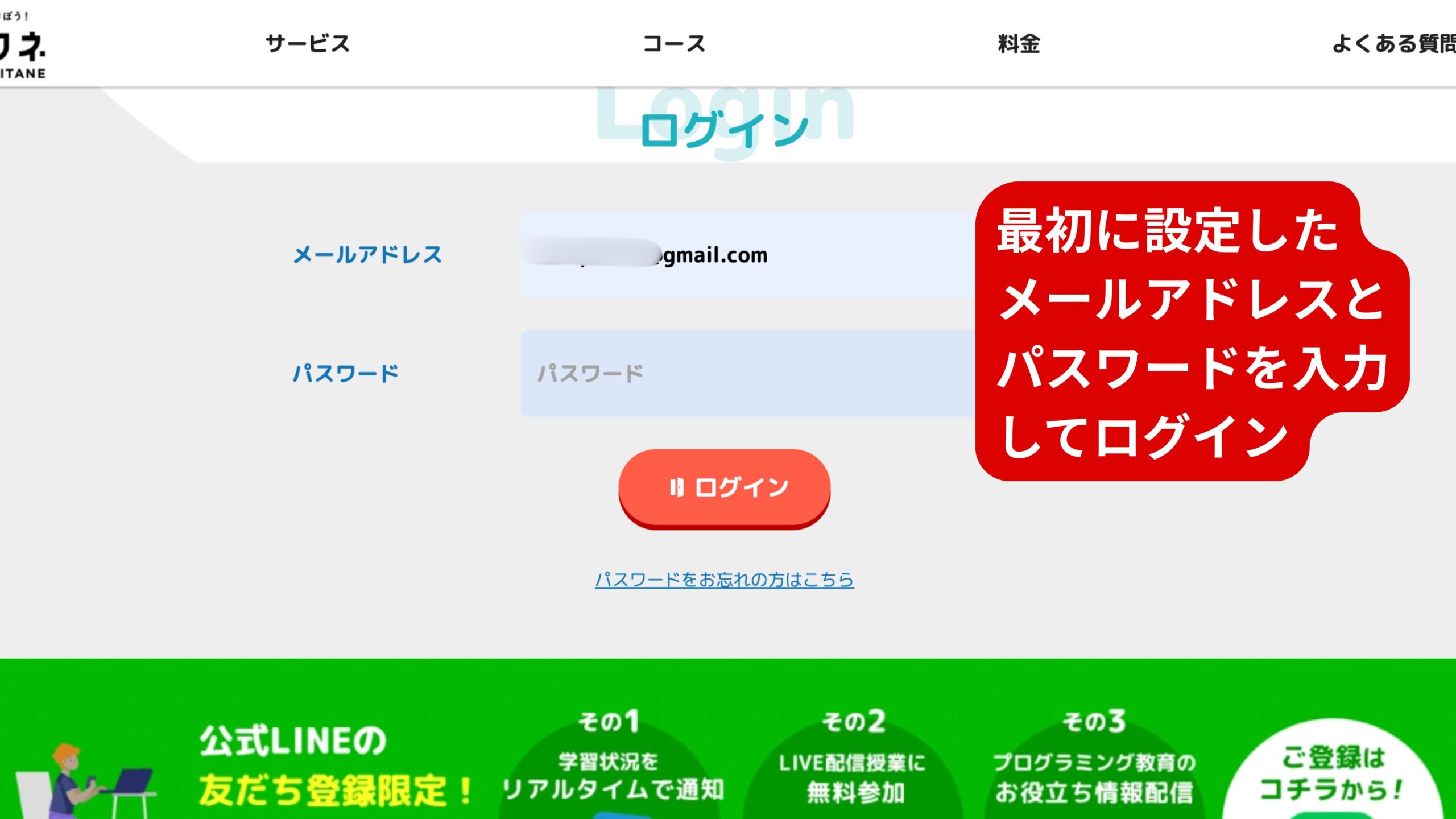 まずはメールアドレスとパスワードを登録します。今後ログインに使うので忘れないようにしましょう。