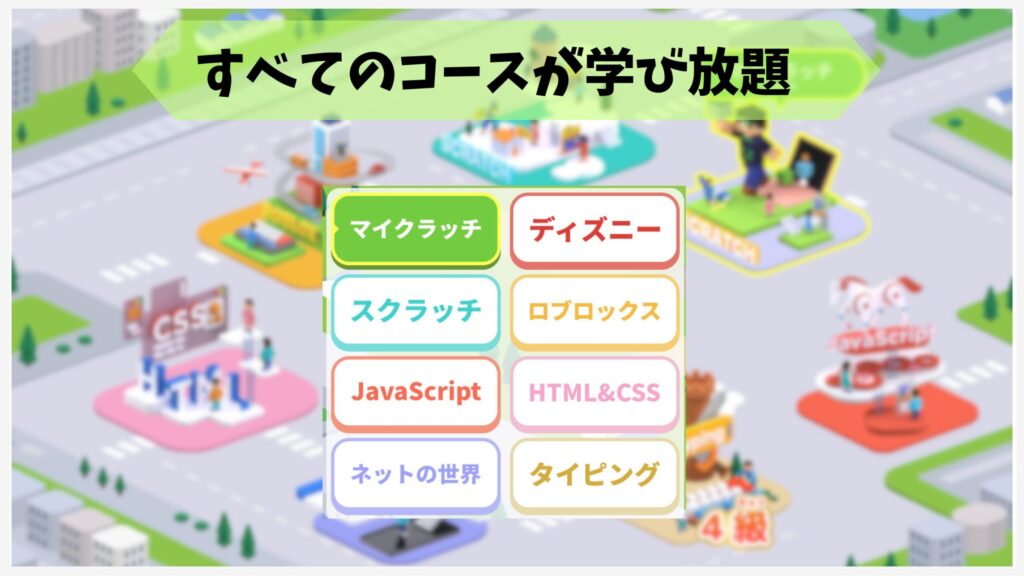スクラッチやマインクラフトといった、プログラミングスクールでは定番のコンテンツに加え、ディズニーやロブロックスといったデジタネならではのコンテンツも多数あります。