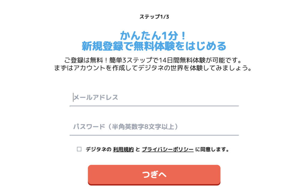 デジタネは本入会する前に、無料体験を行うことができます。体験期間は14日間あるので、その間にお子さんに教材があっているか、続けられそうか見極めてから。